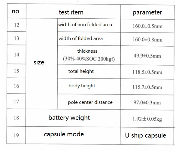 | 4 | standard charge and discharge | charge/discharge current | 0.5C/0.5C | (25+/2)℃ |